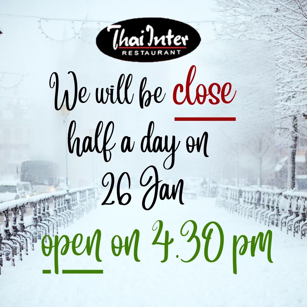 We will be closed a half of day on 26 Jan We will be Close a half of day on 26 Jan and Open on 4.30 pm Happy Hour on August 20 - September 20 Happy Hour Monday - Friday 4:30 - 6:00 PM $2 Off All Appetizers 50% Alcohol Drink October 2 - November 2 for Dining Only Today Promotion We're Open Dine-in & Carry Out & Delivery Open Hours : Mon - Fri 11.01 am - 2.30 pm 4.31 pm - 9.00 pm Sat 12.01 pm - 9.00 pm (dinner start at 2.30 pm) Sun 12.01 pm - 8.30 pm (dinner start at 2.30 pm) See MENU & Order Table Reservation Our Location THAI INTER RESTAURANT222576 Mac Arthur Blvd. Unit 336,California, MD 20619Tel. : (301)866-1880Fax. : (301)866-1881 E-Mail : thaiinter.336@gmail.com Our Cafe